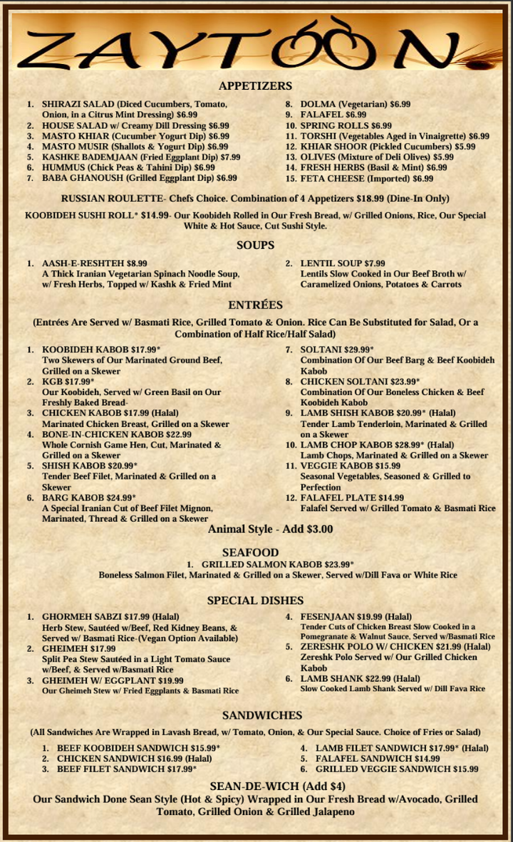 Zaytoon - NV 89147 Menu
