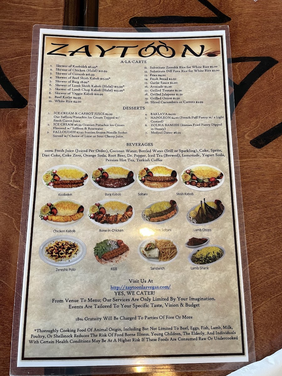 Welcome to Zaytoon - NV 89147, a hidden gem nestled in the heart of Las Vegas, known for its authentic Persian and Mediterranean cuisine. This family-run restaurant proudly serves up exceptional dishes that have been passed down through generations. The Koobideh Kabob at just $12.99 is a standout, praised by patrons for its unparalleled flavor and quality. Guests rave about the tender, marinated meats coupled with perfectly flavored rice and roasted vegetables.
